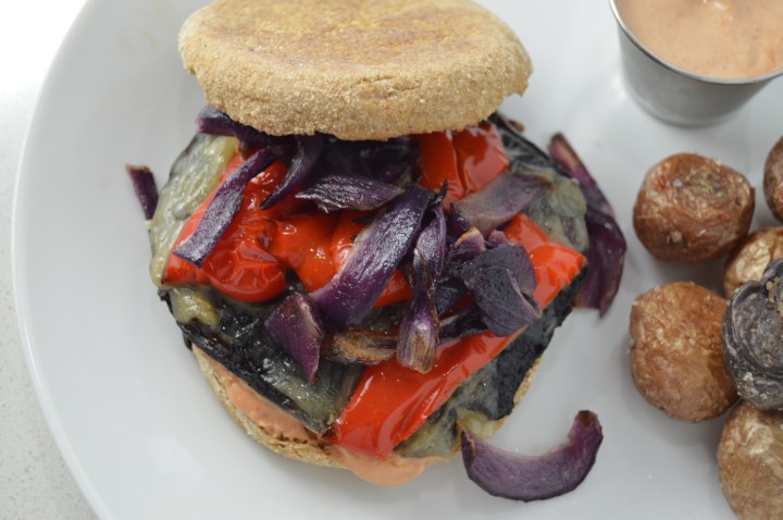 So far this summer I’ve had these portobello burgers on two occasions. With layers of flavorful roasted vegetables, melted cheddar cheese and a creamy, dreamy sauce, this is the simplest and easiest vegetarian meal to whip up and also happens to be insanely delish.