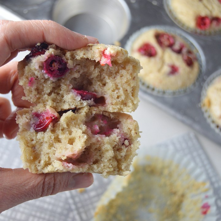 I’m hesitant to call these muffins healthy, but I will go as far as to say they’re healthy-ish. While anything with added sugar should be enjoyed in moderation, muffins are great because they’re meant to be less sweet than a true cake. I also add whole wheat pastry flour in addition to all purpose flour for a little extra fiber and a light texture. Removing dairy and animal products also increases the health factor, and so do the fresh cranberries which are packed with antioxidants. All in all, these are a delicious, easy and crowd-pleasing addition to any holiday table.