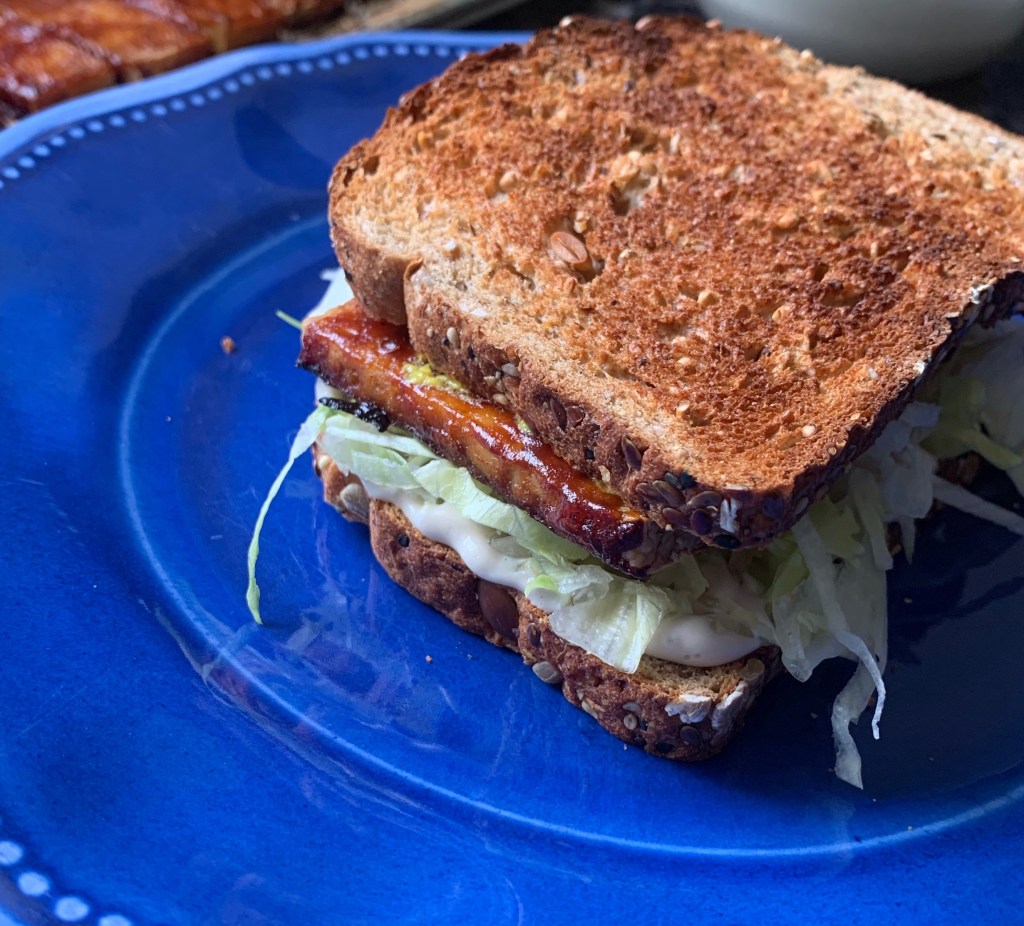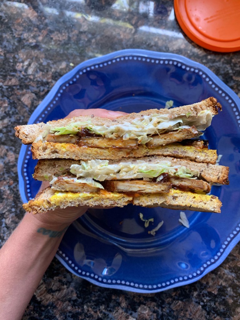 You all know that I love vegan-izing my favorite foods from my pre-plant-based days, and this post falls under that category. Growing up my dad would grill bbq chicken breasts in the summer and although the bbq chicken itself didn’t do much for me, I looked forward to making a sandwich with the leftovers. Nothing complicated yet so delicious, my bbq chicken sandwich included sliced leftover chicken stacked on toasted wheat bread with rich mayo, tangy mustard, extra bbq sauce (duh) and some fresh shredded lettuce. Simple? Yes. But super satisfying none the less.