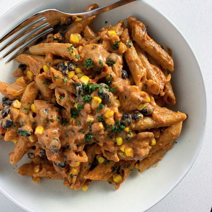 Creamy Tex-Mex Penne with Black Beans & Corn