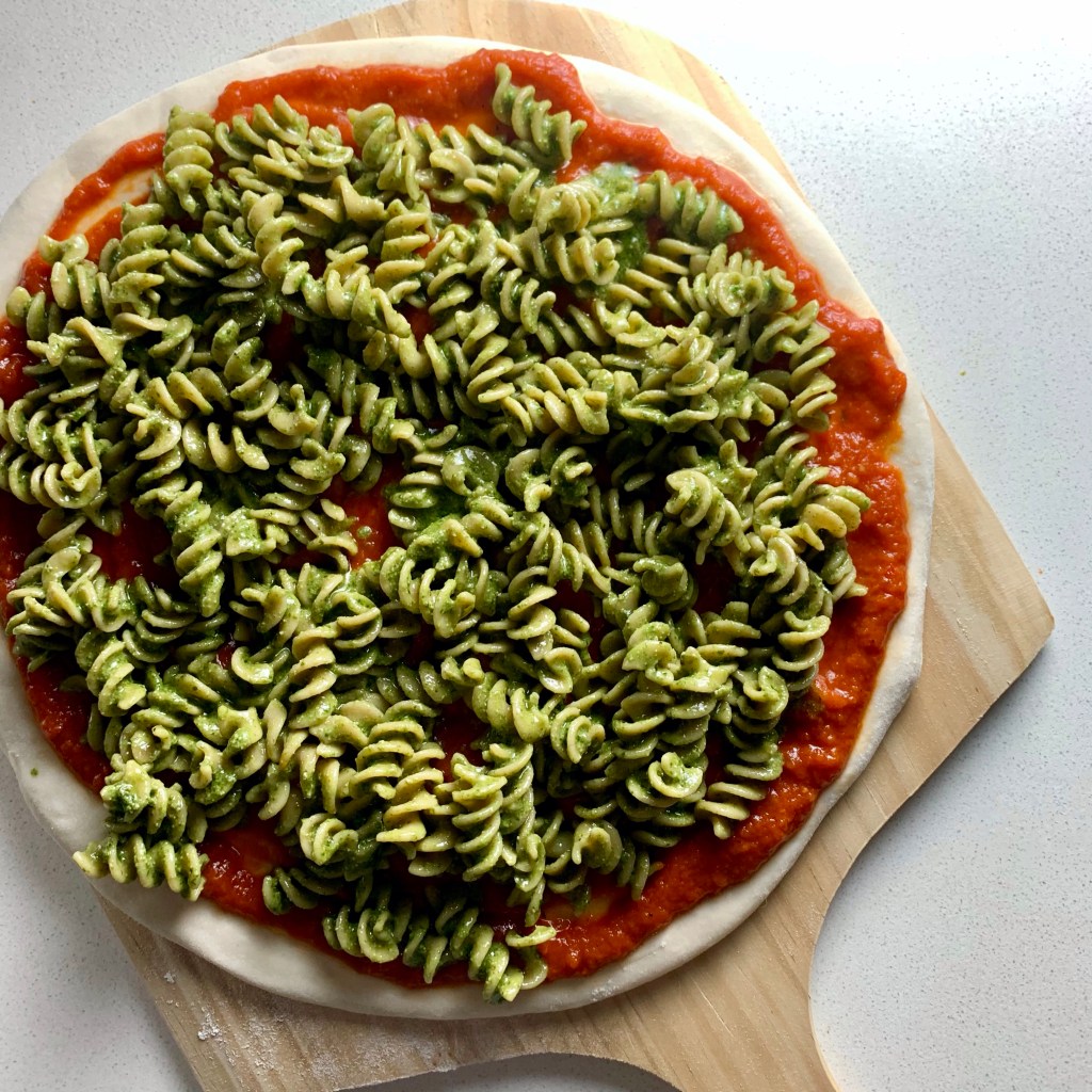 Genius. I never thought of putting pasta on pizza. The best of both worlds. 🍃🍕