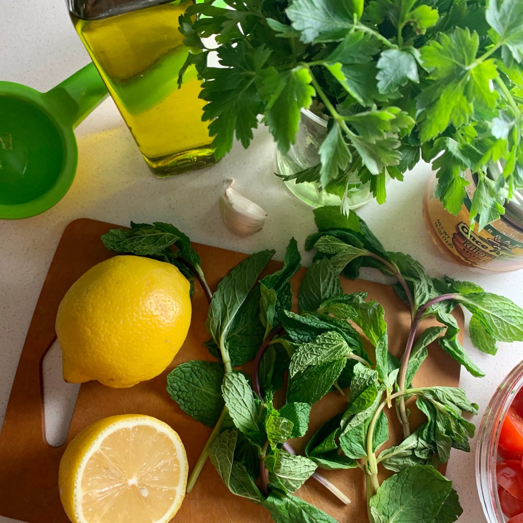 Onion – onion (usually scallion) is a typical addition to tabouli salad. I use a standard white or yellow onion because I always have them. The onion mellows when it’s had time to sit with the vinaigrette, and I even recommend soaking the onion in the vinaigrette before adding to the salad. You can also soak the onion on cold water for 15 minutes, drain and add to the salad, this helps mellow the flavor.