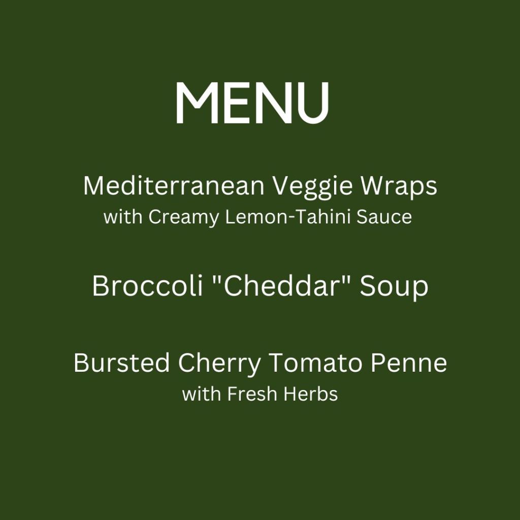 My weekly meal plans are designed to make cooking plant-based food easy and delicious. I curate three recipes each week, all based on my pantry and fridge stock list.