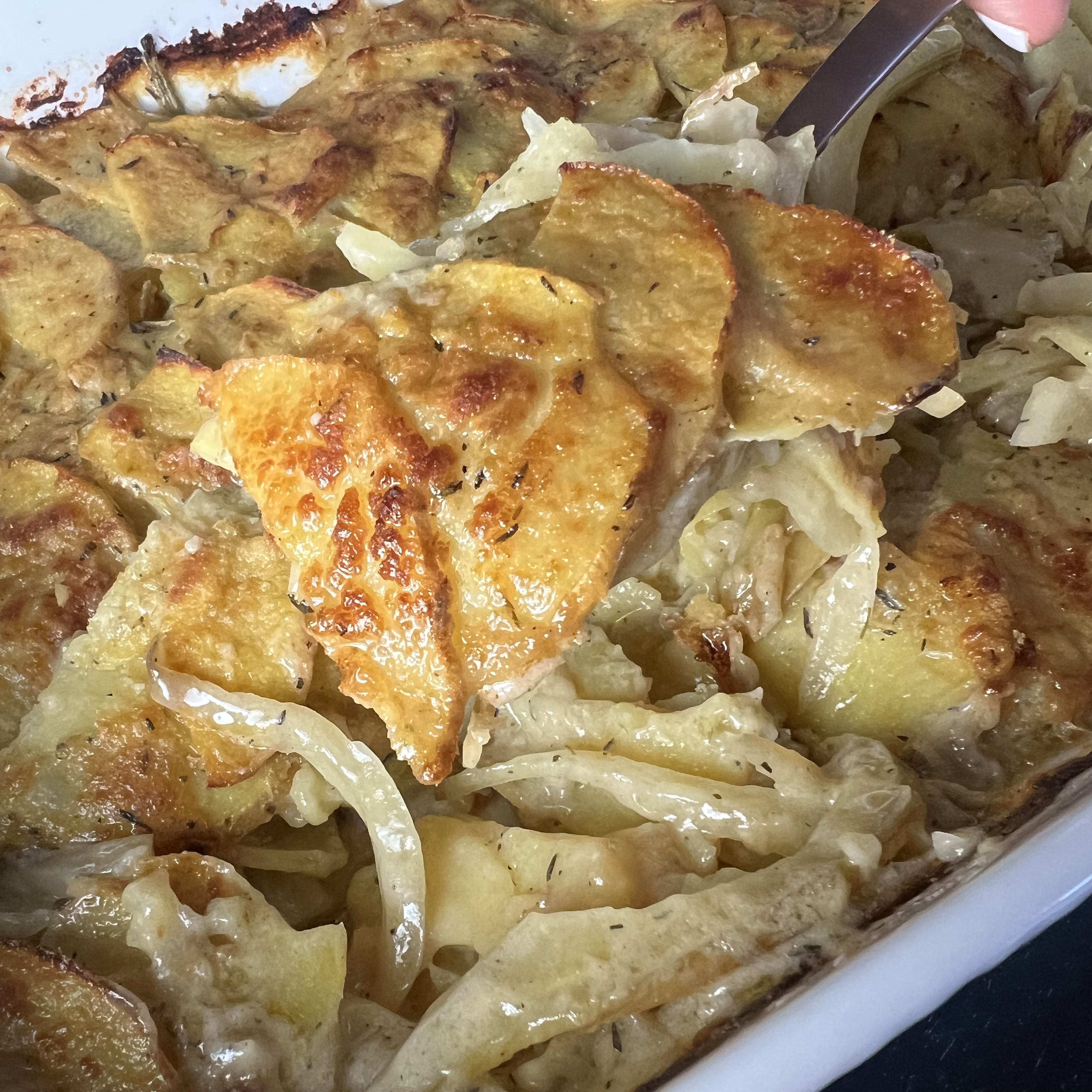 Scalloped potatoes (or potato gratin) is a staple holiday dish, and the perfect addition to any brunch spread. This plant-based version is creamy, rich and flavorful, without using any dairy. The velvet-y sauce is a simple oatmilk bechamel, and I add sliced fennel to the layering for even deeper flavor. This is a must try recipe that’s a total crowd-please.