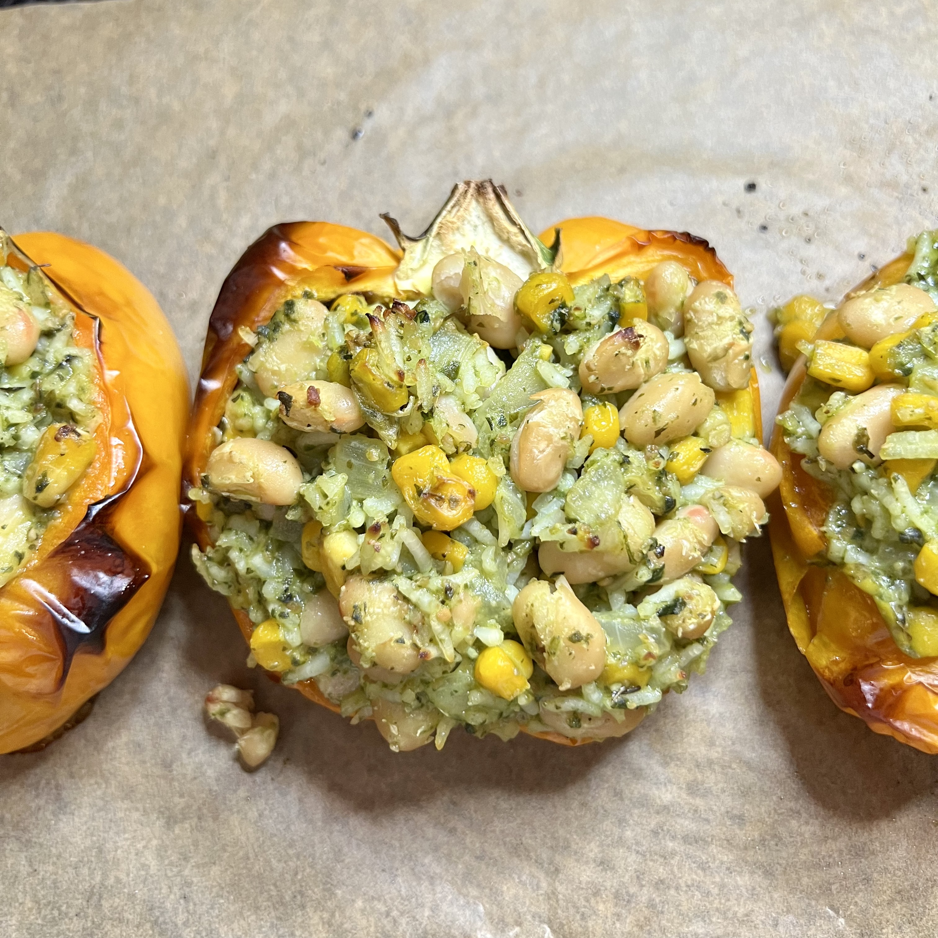 These stuffed peppers are a delish twist on a classic tomato-based stuffed pepper. The filling is absolutely scrumptious and could honestly be a meal in itself. I give the option of adding cheese shreds but they’re so flavorful without it, it’s totally up to you!