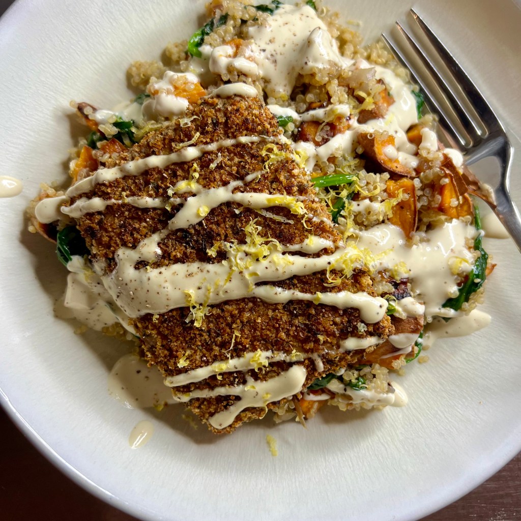 One thought on “Crispy Tofu Cutlets with Sweet Potato Quinoa and Lemony Cream Sauce (vegan | plant-based)”