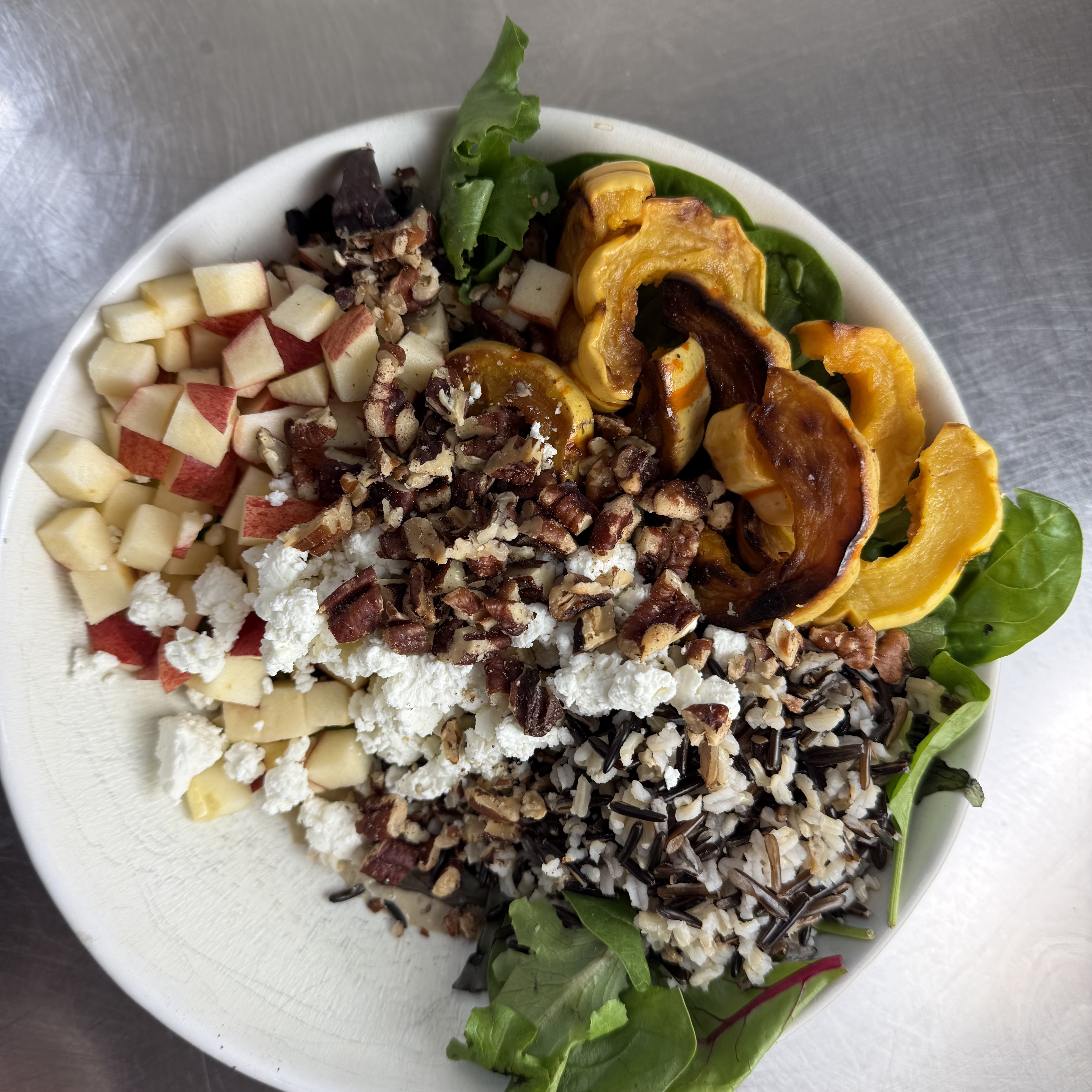If you know me, you know I like spoonable salads where everything is chopped up and mixed with dressing so you can eat it with a spoon. But if you want the visual of all of the fall-inspired goodies just pile everything on a thick layer of dressing which will make getting dressing in every bite easier.