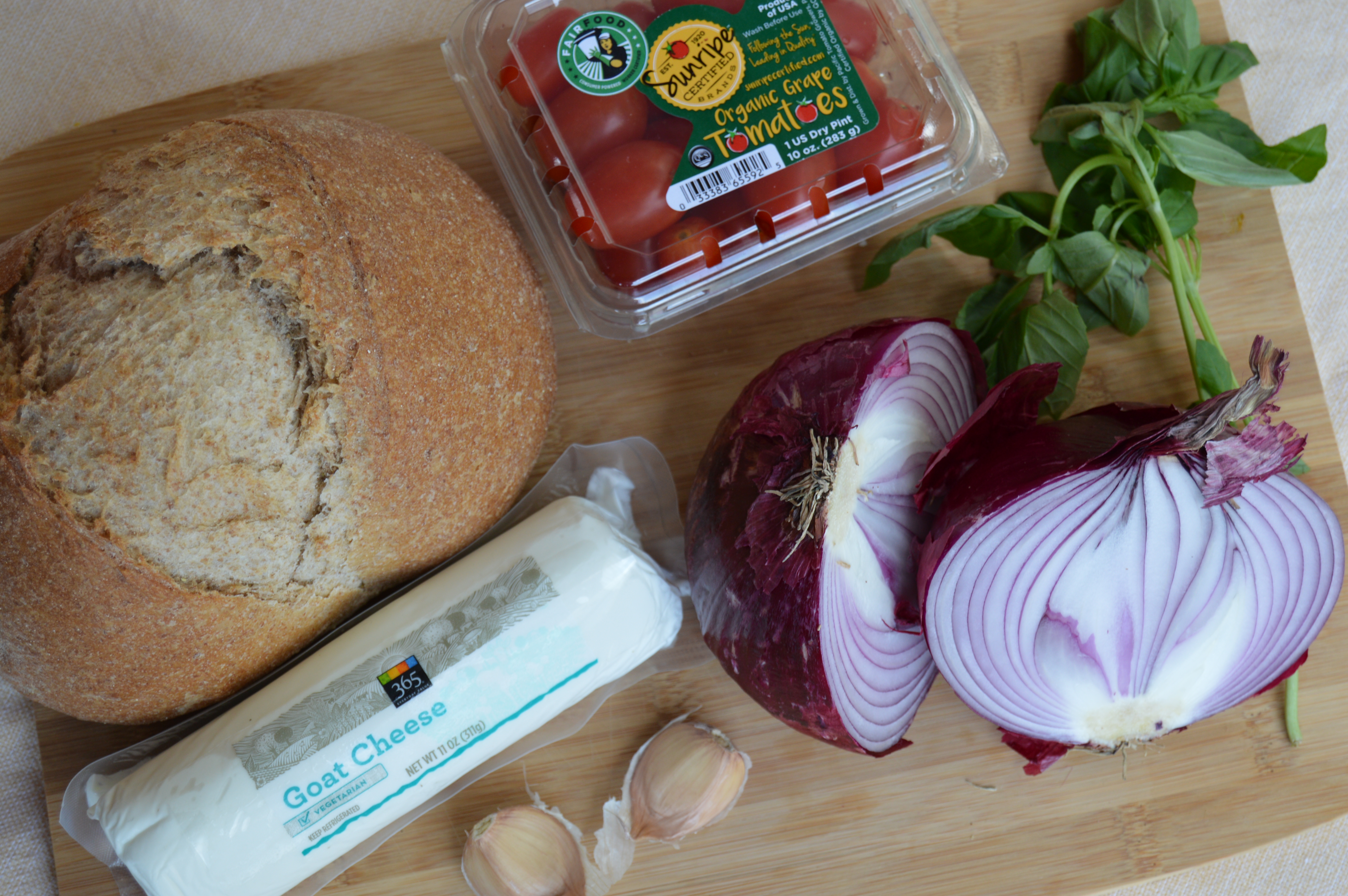Herb Goat Cheese Toasts with Roasted Tomato & Red Onion