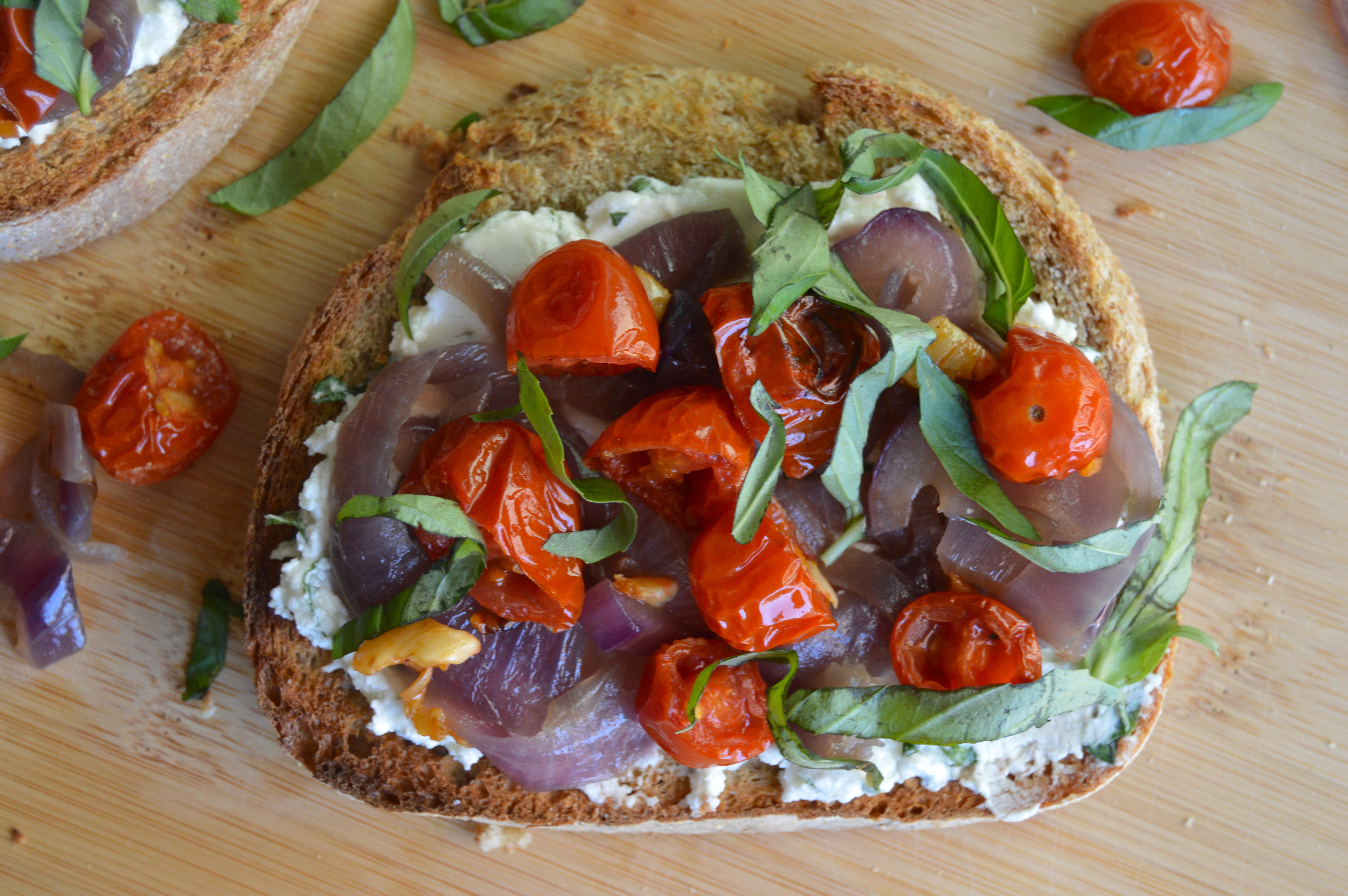 Herb Goat Cheese Toasts with Roasted Tomatoes & Red Onion